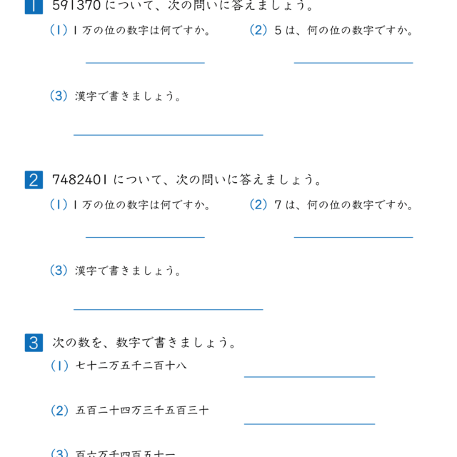 | 2025年11月 | 「10000より大きい数(万・億の表し方・しくみ)|練習問題|小学3年生|算数プリント」大きい数(万・億)の表し方、数のしくみを8枚更新 | 小学生教材 |