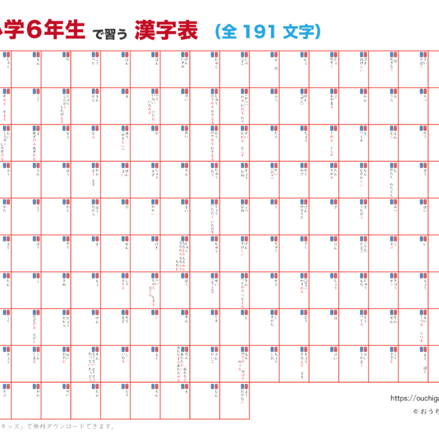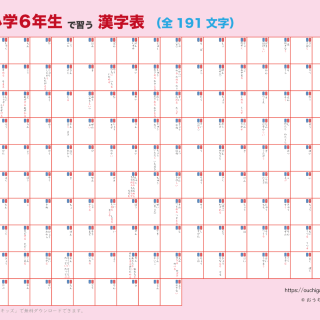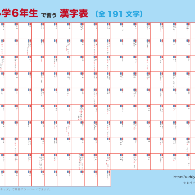 | 2025年12月 | 「漢字表・ポスター|小学生」の「自分で書ける漢字表・ポスター」小学4年生、小学5年生、小学6年生を9件追加 | 幼児教材 |
