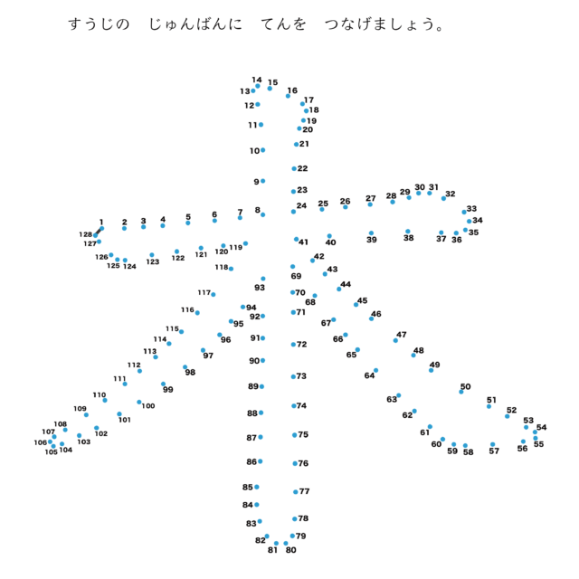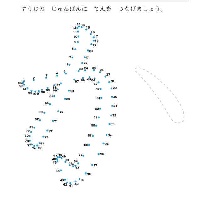 | 2025年12月 | 「点つなぎ(60〜100までの数字):難しい」を5件(ひらがな「え」「か」、漢字「水」「土」、恐竜(39)ムッタブラサウルス)追加 | 幼児教材 |