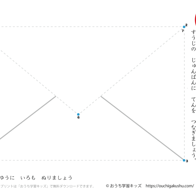 点つなぎ「手紙」。1から10までの数字の学習、運筆の練習ができる。PDFファイルを無料ダウンロード&印刷。