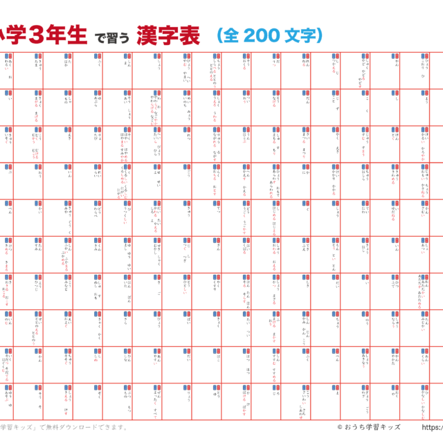 国語プリント 自分で書いて飾れる漢字表・ポスター(小学3年生)ホワイト 自分で書いて飾れる漢字一覧表・ポスター(小学3年生)ホワイト。子どもが書いた小3漢字の文字をポスターとして飾りたい方・記念に残したい方、暗記できたかまとめて確認したい方向け。B4サイズとA4サイズ。PDFファイルを無料ダウンロード印刷。 2025.09.24 国語プリント小学生教材漢字練習プリント漢字表・ポスター