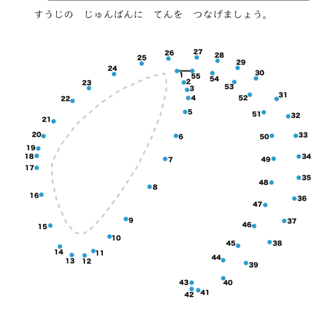 点つなぎ ひらがな「ま」。1から110までの数字の学習、運筆の練習ができる。PDFファイルを無料ダウンロード&印刷。