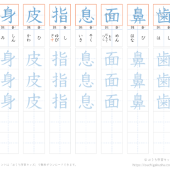 1枚のプリントに漢字を8字まとめて練習することができます。