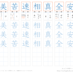 1枚のプリントに漢字を8字まとめて練習することができます。