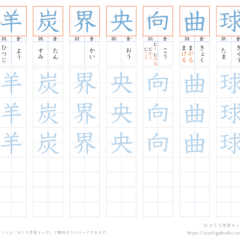 1枚のプリントに漢字を8字まとめて練習することができます。