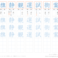 1枚のプリントに漢字を8字まとめて練習することができます。