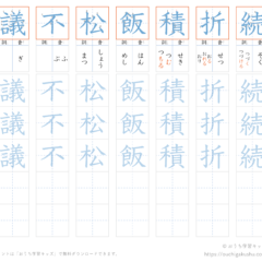 1枚のプリントに漢字を8字まとめて練習することができます。