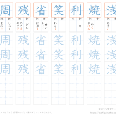 - このプリントでは「然・浴・芽・改・共・願・失・辺」の漢字を練習できます。