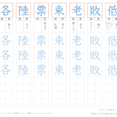 1枚のプリントに漢字を8字まとめて練習することができます。