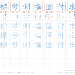 1枚のプリントに漢字を8字まとめて練習することができます。