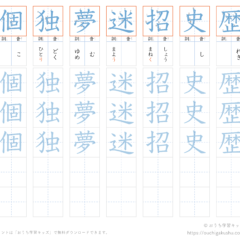 1枚のプリントに漢字を8字まとめて練習することができます。