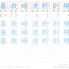 - 音読み・訓読み、書き順付き。