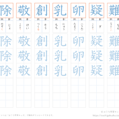 1枚のプリントに漢字を8字まとめて練習することができます。