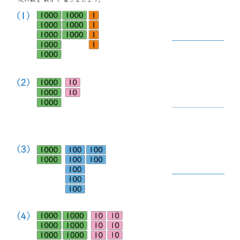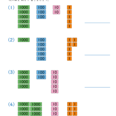 - 複数ある1000単位、100単位、10単位、1単位の絵を見て数字に置き換える