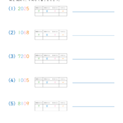 カテゴリー「小学生教材・プリント」>「算数プリント」>「10000までの数(1000より大きい数)|算数プリント|練習問題|小学2年生」