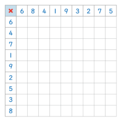 - 10まで数字(1桁+1桁の掛け算)