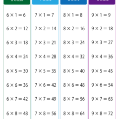 九九表・読みがなつき・2枚組後半(6の段〜9の段)|算数ポスター|小学2年生 スポンサーリンク 九九表 X Facebook はてブ LINE Pinterest 2022.05.242025.10.09 カテゴリー「小学生教材・プリント」>「算数プリント」>「九九表|算数ポスター|小学2年生」 小学2年生で覚える掛け算の九九表 部屋に貼って九九が暗記できる表・ポスター 読みがな:あり 2枚組後半(6の段〜9の段) サイズ:B4とA4から選べる 下の「プリントページ」から無料でダウンロード&印刷しプリントにできます(PDFファイル)。 プリントページ(B4) プリントページ(A4)