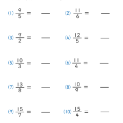 - 整数と真分数の和からなる分数(帯分数)に直す問題(2枚目)