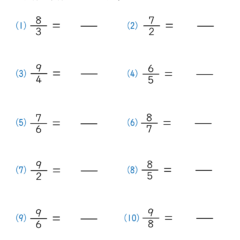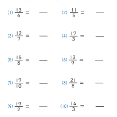 小学4年生で学習する仮分数を帯分数に直す問題。