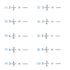 - 分子が分母よりも大きい分数(仮分数)に直す問題(2枚目)