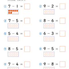 カテゴリー「小学生教材・プリント」>「算数プリント」>「10までの引き算|算数プリント|練習問題|小学1年生」