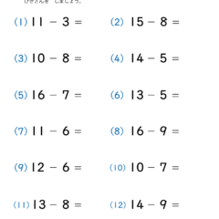 カテゴリー「小学生教材・プリント」>「算数プリント」>「20までの引き算(繰り下がりのある)|算数プリント|練習問題|小学1年生」