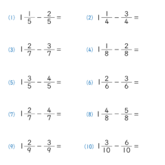 カテゴリー「小学生教材・プリント」>「算数プリント」>「分数の引き算(小4)|算数プリント|練習問題|小学4年生」