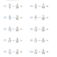 カテゴリー「小学生教材・プリント」>「算数プリント」>「分数の引き算(小5)|算数プリント|練習問題|小学5年生」