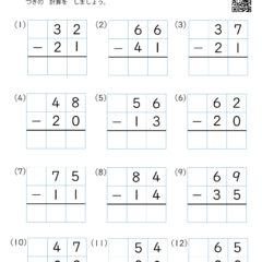カテゴリー「小学生教材・プリント」>「算数プリント」>「引き算・筆算(2桁)|算数プリント|練習問題|小学2年生