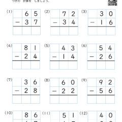 カテゴリー「小学生教材・プリント」>「算数プリント」>「引き算・筆算(2桁)|算数プリント|練習問題|小学2年生」