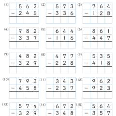 カテゴリー「小学生教材・プリント」>「算数プリント」>「引き算・筆算(3桁)|算数プリント|練習問題|小学3年生」