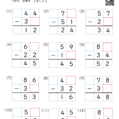 カテゴリー「小学生教材・プリント」>「算数プリント」>「虫食い算・引き算(筆算・2桁−2桁)|算数プリント|練習問題|小学2年生」