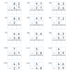 - 式(小数第一位の引き算)の後半を筆算の枠(マス)に書いて計算する練習