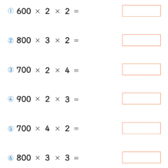 - 小学3年生に学習する「3つの数の掛け算・工夫して計算」3問目