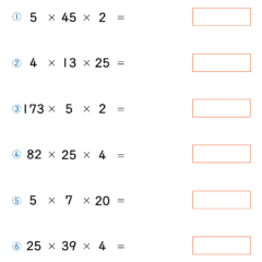 - 解き方:「2✕5=10」「25✕4=100」を先に計算すると暗算で解ける