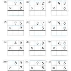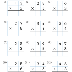 カテゴリー「小学生教材・プリント」>「算数プリント」>「掛け算・筆算(2桁)|算数プリント|練習問題|小学3年生」