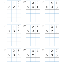 • 2桁×2桁の掛け算を筆算で計算する問題