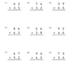 カテゴリー「小学生教材・プリント」>「算数プリント」>「小数のかけ算(整数×小数・筆算・小学5年生)|算数プリント|練習問題」
