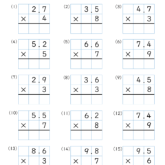 カテゴリー「小学生教材・プリント」>「算数プリント」>「小数のかけ算(小数×整数・筆算・小4)|算数プリント|練習問題|小学4年生」