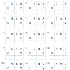 カテゴリー「小学生教材・プリント」>「算数プリント」>「小数のかけ算(小数×整数・筆算・小4)|算数プリント|練習問題|小学4年生」