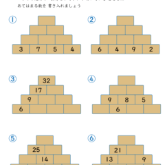 カテゴリー「小学生教材・プリント」>「算数プリント」>「計算ピラミッド|練習問題|小学2年生|算数プリント」