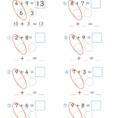 - 1桁+1桁の数字で繰り上がりのある足し算