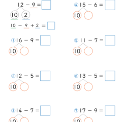 - 1つ目の数を10と残りの数に分解し、10から2つ目の数を引き、出た答えに1つ目の残りの数を足す方法