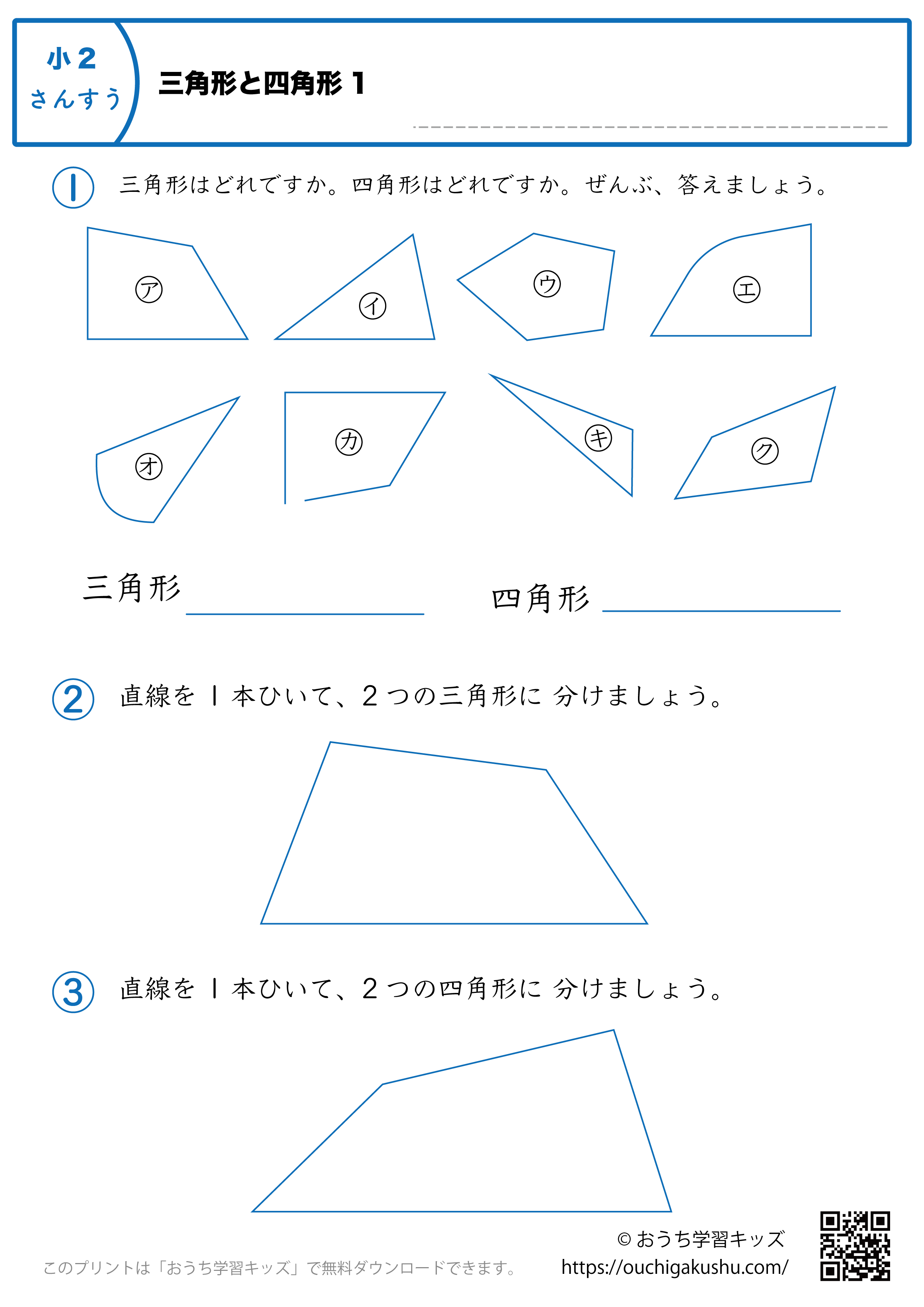 カテゴリー「小学生教材・プリント」>「算数プリント」>「三角形と四角形|練習問題|小学2年生|算数プリント