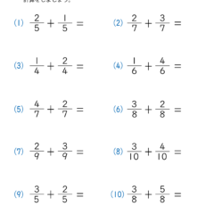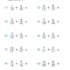 - 分母は同じ数字で、答えが1を超えない簡単な問題(分子が分母を超えない)