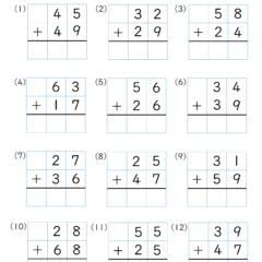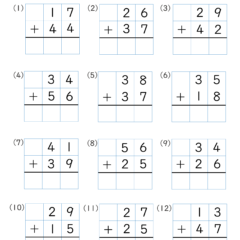 カテゴリー「小学生教材・プリント」>「算数プリント」>「足し算・筆算(2桁)|算数プリント|練習問題|小学2年生」