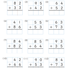 カテゴリー「小学生教材・プリント」>「算数プリント」>「足し算・筆算(2桁)|算数プリント|練習問題|小学2年生」