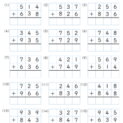 カテゴリー「小学生教材・プリント」>「算数プリント」>「足し算・筆算(3桁)|算数プリント|練習問題|小学3年生」