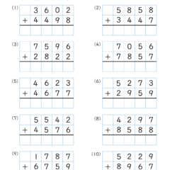 カテゴリー「小学生教材・プリント」>「算数プリント」>「足し算・筆算(4桁)|算数プリント|練習問題|小学3年生」