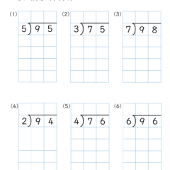 カテゴリー「小学生教材・プリント」>「算数プリント」>「割り算・筆算(小学4年生・3桁÷1桁=3桁・商に0が入る・あまりあり)|算数プリント|練習問題」